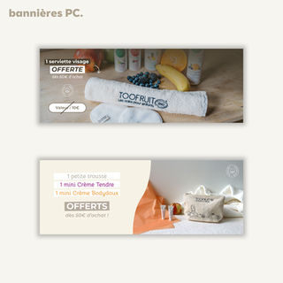 Projets professionnels - Création de bannières pour le site internet et de visuels pour les réseaux sociaux de la marque TOOFRUIT